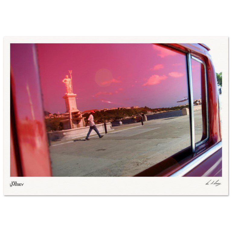 Transform your space with our stunning Cuban Street Reflection Poster, featuring the vibrant scene of a classic red American car beautifully reflecting the lively streets of Cuba, captured by the talented Ian Livesey. This exquisite piece of art is perfect for those who appreciate both travel and automotive beauty.
