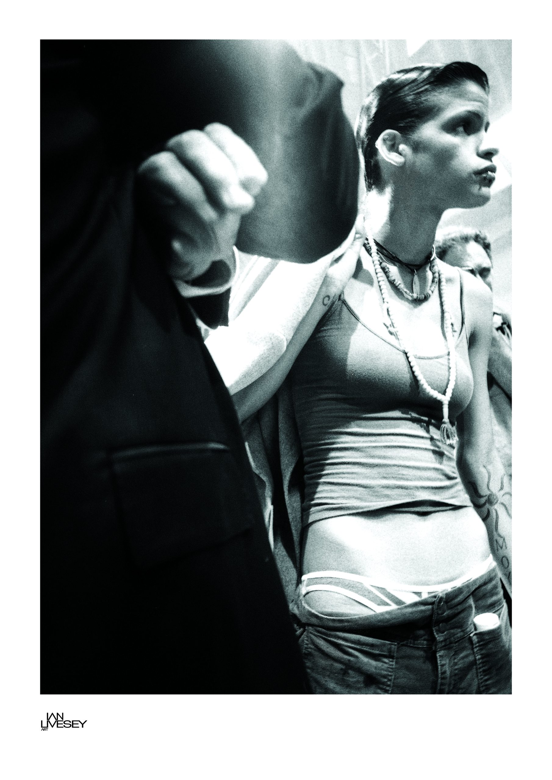 Ian photographed Omahyra Mota on cat walk rehearsals  with legendary designer Jean Paul Gaultier at Paris Fashion show