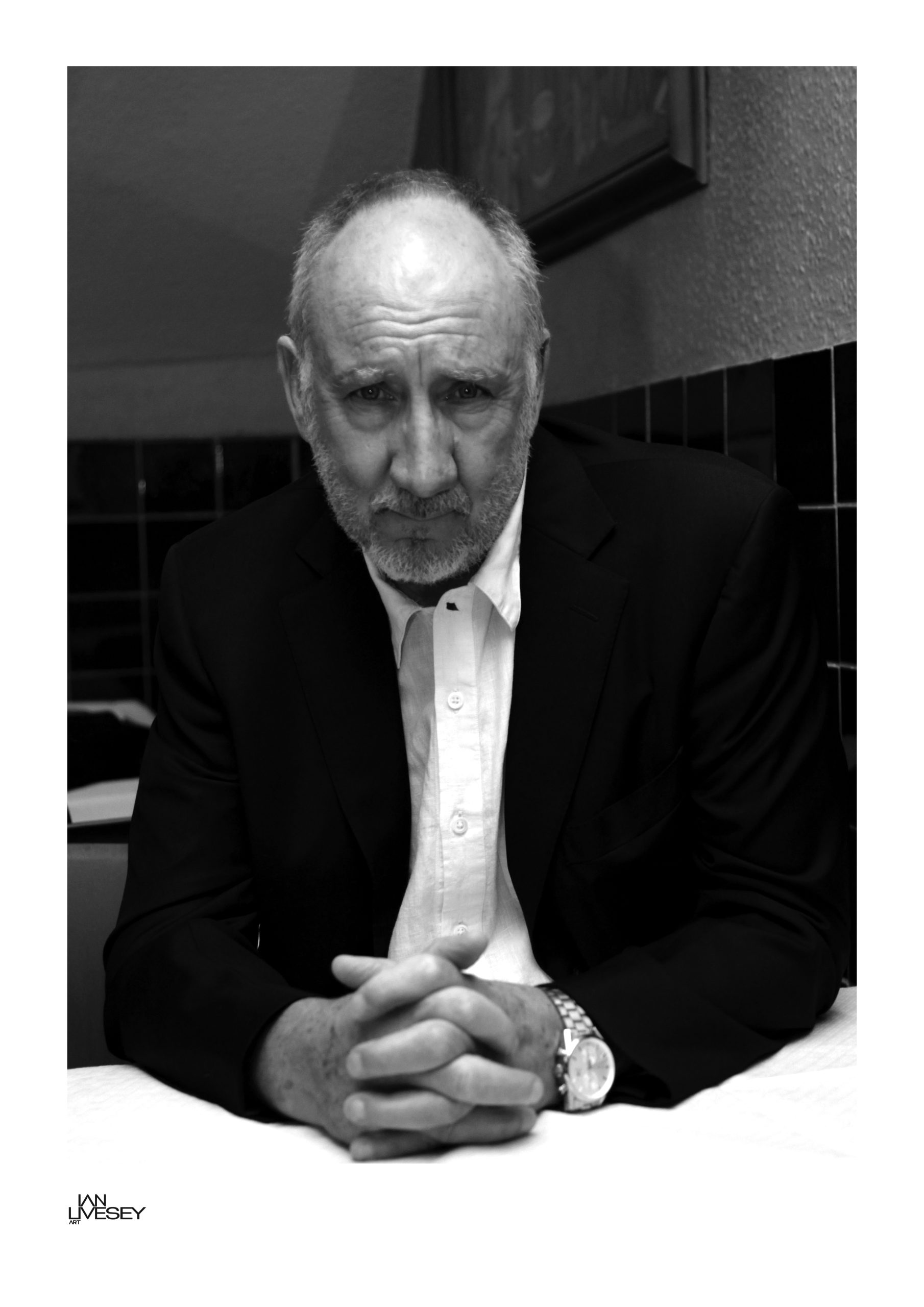 This intimate dynamic portrait of Pete Townshed that Ian took, was in a Pie and Mash shop where the after party from his unplugged concert of Quadrophenia, new digital remastered album  “Quadraphonic sound” at Bush Hall