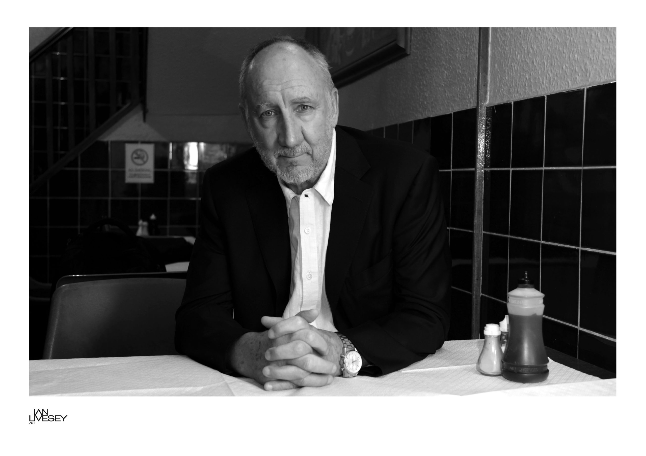 This intimate portrait of Pete Townshed that Ian took, was in a Pie and Mash shop where the after party from his unplugged concert of Quadrophenia, new digital remastered album  “Quadraphonic sound” at Bush Hall